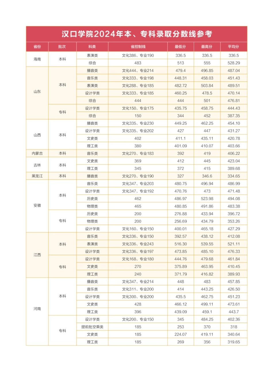 权威发布||2025年《湖北招生考试》汉口学院专业代码及分数参考