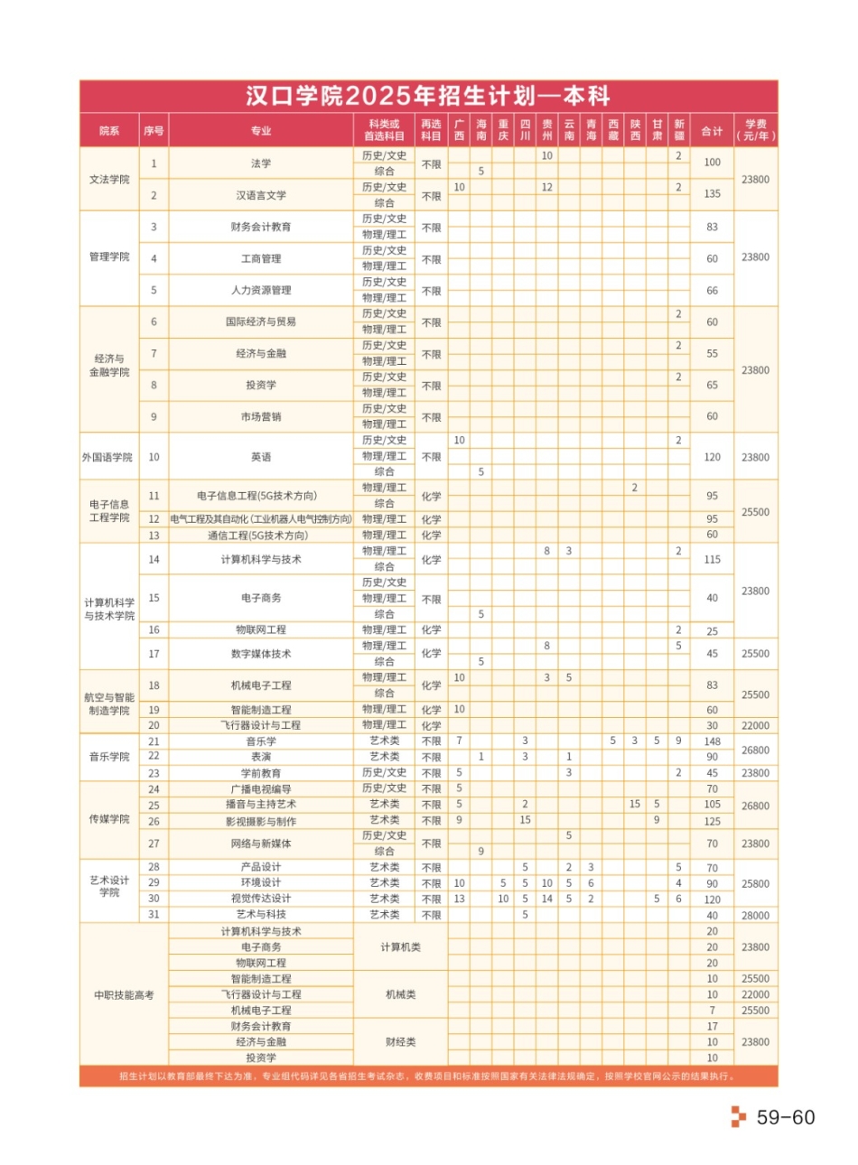 汉口学院2025年招生计划----专科